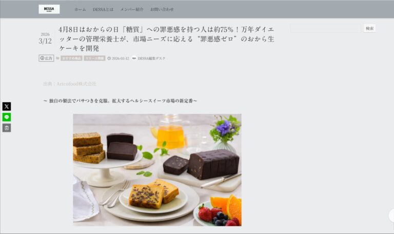 記事では、管理栄養士が開発した低糖質スイーツ 「おからの生ケーキ」 を中心に、健康志向の方にも楽しんでいただけるスイーツとして取り上げていただいています。